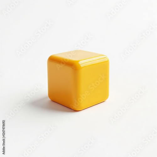 © NgoHong, Fototapeta premium Glossy Yellow Cube on White Background