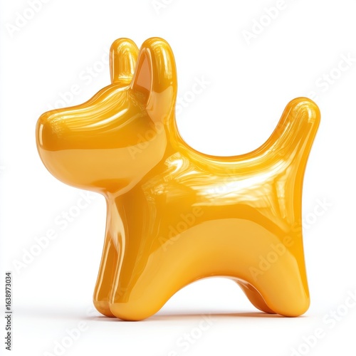 © Jamtana, Fototapeta premium Glossy Yellow Dog Figurine on White Background