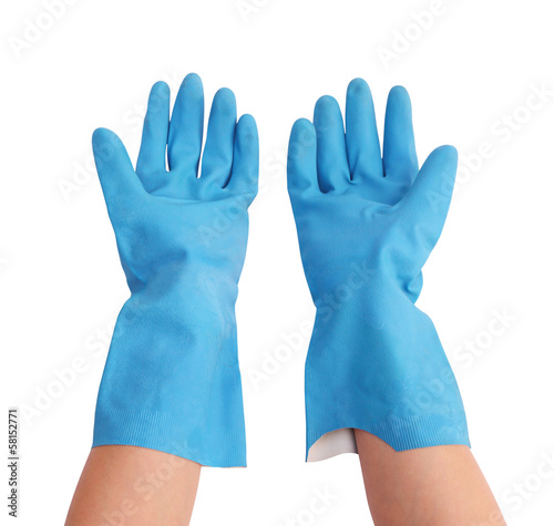 © geargodz, Fototapeta premium gloves for cleaning with hand on white background