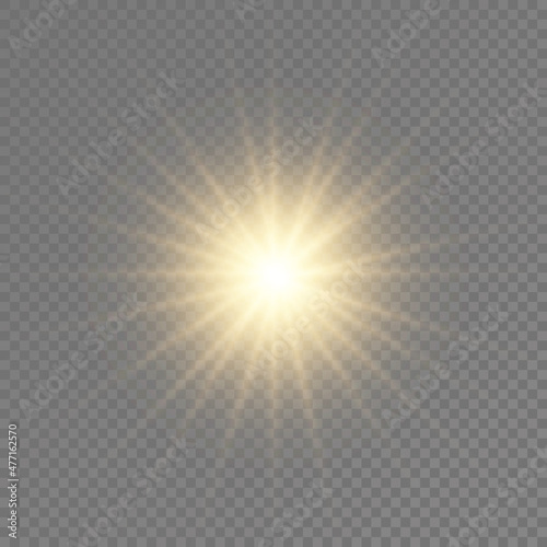 Fototapeta premium Glow bright light star, yellow sun rays.
