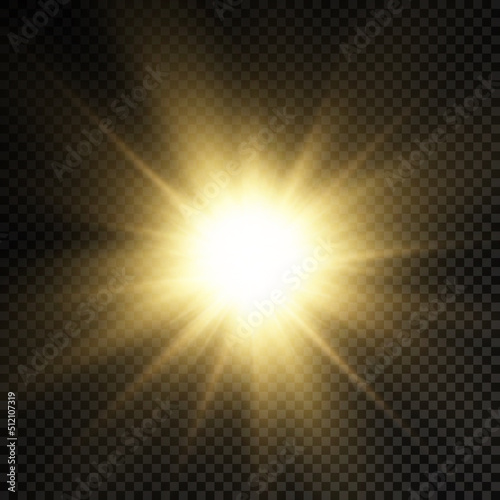 Fototapeta premium Glow bright light star, yellow sun rays, sunshine.