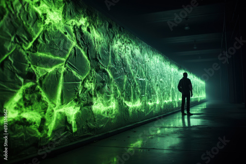 Fototapeta premium Glow-in-the-dark paint revealing hidden patterns on a wall, demonstrating the...