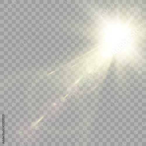 © vikusandra, Fototapeta premium Glow isolated light effect set, lens flare, explosion, glitter, line, sun flash and stars. Abstract special effect element design. Shine ray with lightning