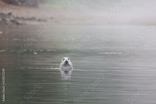 © ozerkina, Fototapeta premium Głowa dzikich fok w morzu. Morze Ochockie