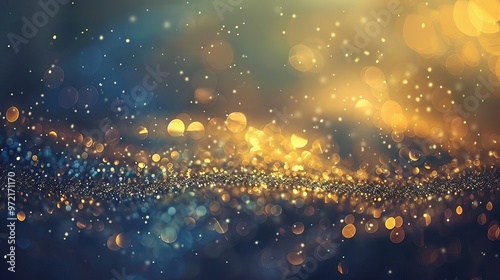 © Ameer, Naklejka premium Glowing abstract golden bokeh background with soft blurred sparkles, ideal for festive holiday designs, elegant event visuals, and luxurious celebration themes.