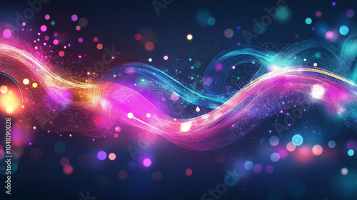 Fototapeta premium Glowing abstract light background with purple and blue neon waves, creating a...