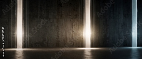 Fototapeta premium Glowing Abstract: Neon lights illuminate a dark wooden wall and floor, creating a captivating abstract backdrop for your design projects.