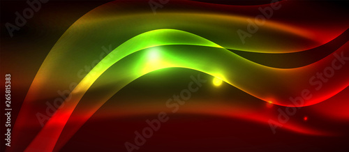 © antishock, Fototapeta premium Glowing abstract wave on dark, shiny motion, magic space light. Techno abstract background
