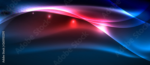 © antishock, Fototapeta premium Glowing abstract wave on dark, shiny motion, magic space light. Techno abstract background