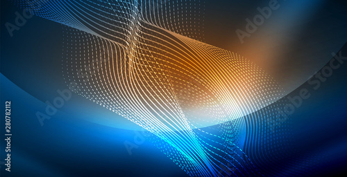Naklejka premium Glowing abstract wave on dark, shiny motion, magic space light. Vector techno...