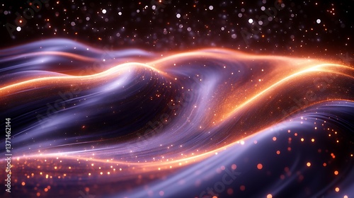 © Ponpes, Fototapeta premium Glowing abstract wavy forms with shimmering particles floating around