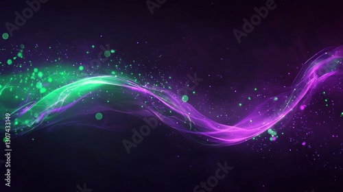 © isend, Fototapeta premium Glowing abstract wavy lines of green and purple colors