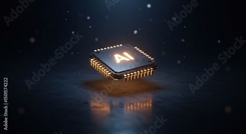 Fototapeta premium Glowing AI Microchip on Dark Background