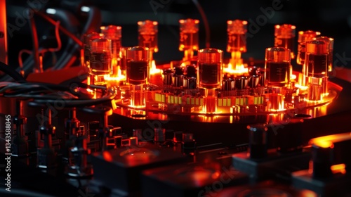 © KOSHKAROV SERGEI, Obraz premium Glowing Analog Processor Illuminated Against a Dark Background