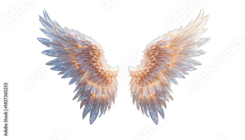 © David_01, Fototapeta premium Glowing Angel Wings – A Divine, Luminous Pair with Intricate Feather Details and Celestial Elegance