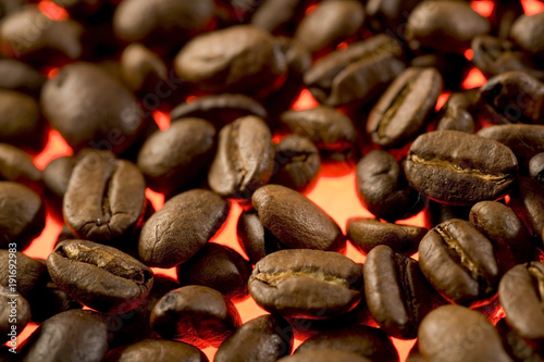 © Chris Rose, Obraz premium Glowing backlit coffee beans close up texture