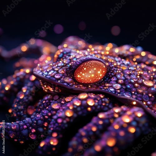 Fototapeta premium Glowing bioluminescent octopus with iridescent texture in dark ocean setting