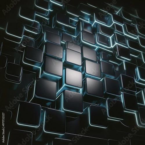 © Kartik, Obraz premium Glowing black and blue abstract squares background pattern 3D rendering