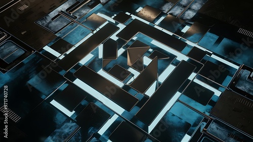 © Kartik, Obraz premium Glowing black and blue abstract squares background pattern 3D rendering