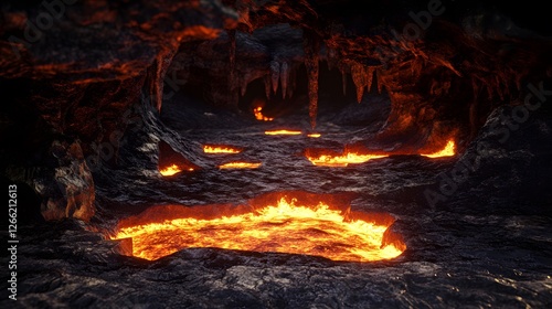 Naklejka premium Glowing blobs within Earth's layers reveal ancient underground structures,...