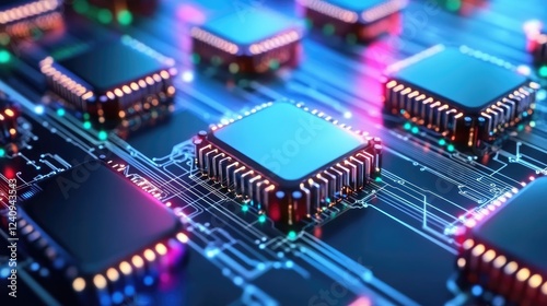 © Sampao, Fototapeta premium Glowing blockchain network forming an AI-powered decentralized financial ecosystem.