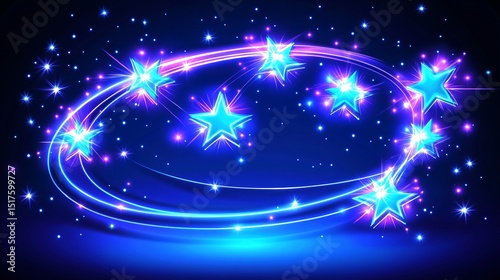 © Yohanes, Obraz premium Glowing Blue and Purple Stars in a Whirlwind Circular Design