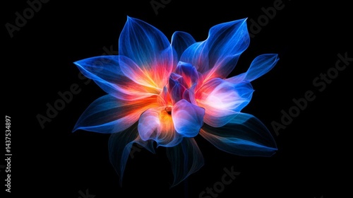 Fototapeta premium Glowing Blue and Red Flower on Black Background