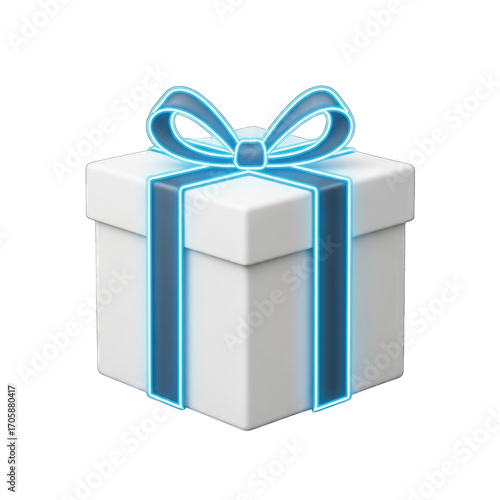 Obraz premium Glowing blue bow adorns a classic white gift box perfect for any celebration...