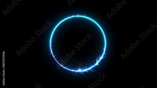© Elif, Fototapeta premium Glowing Blue Circle on Black Background