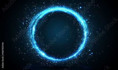 Fototapeta premium Glowing blue circle with sparkles on a dark background