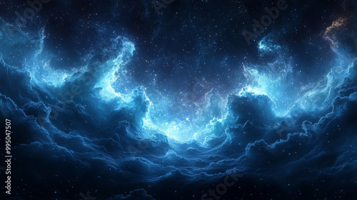 Fototapeta premium Glowing blue clouds in a star filled sky.