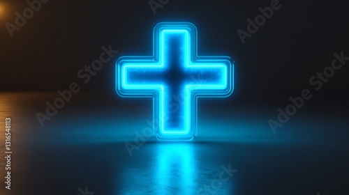 © Mas Labardo, Obraz premium Glowing Blue Cross on Dark Background