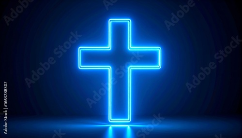 © Banteng, Obraz premium Glowing Blue Cross Shape on Dark Background with Light Reflection