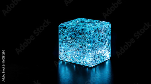 Obraz premium Glowing Blue Crystal Cube On Dark Background