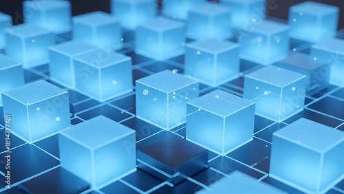 © SadikurRahman, Obraz premium Glowing blue cubes in futuristic grid structure