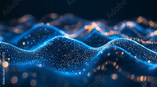 © Oleksandr, Obraz premium Glowing blue data matrix, futuristic technology background, complex network, dynamic and high-tech atmosphere, abstract digital visualization
