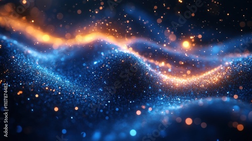 © Hvkk, Obraz premium glowing blue digital lines 3d rendering