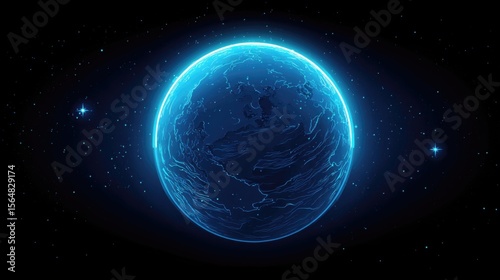 © 相宜, Obraz premium Glowing Blue Digital Planet in Space