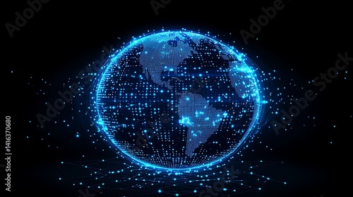 © NCSF, Obraz premium Glowing Blue Digital Sphere on Black Background