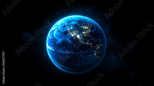 © NCSF, Obraz premium Glowing Blue Digital Sphere on Black Background