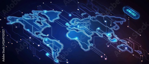 Obraz premium Glowing Blue Digital World Map Network