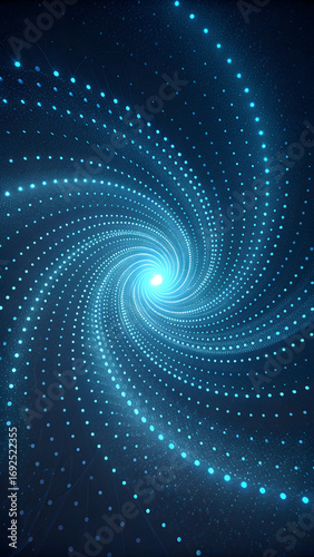 © TanminAkter, Fototapeta premium Glowing blue dots spiral into a bright light vortex on a dark full hd 4k stock image download background