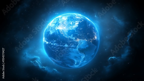 Fototapeta premium Glowing blue Earth in space.