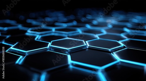 Obraz premium Glowing blue hexagonal pattern in deep perspective, futuristic hi-tech design