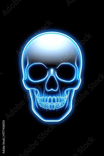 Fototapeta premium Glowing blue human skull isolated on black background.