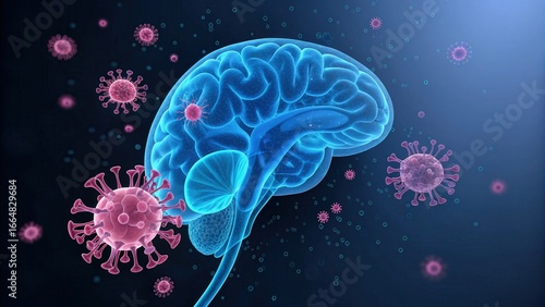 Fototapeta premium Glowing Blue Kidney Connected to Brain with Neural Pathways and Virus-Like...