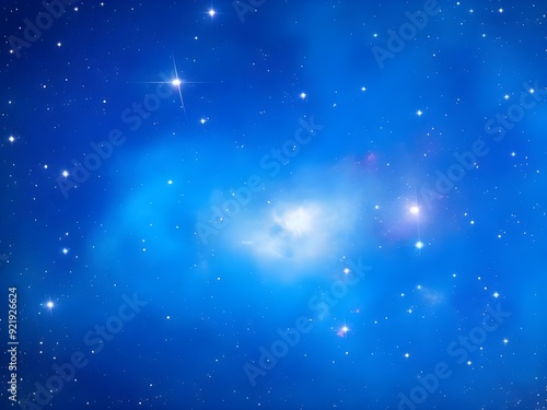 © design vector, Fototapeta premium Glowing Blue Nebula with Stars in Deep Space Background