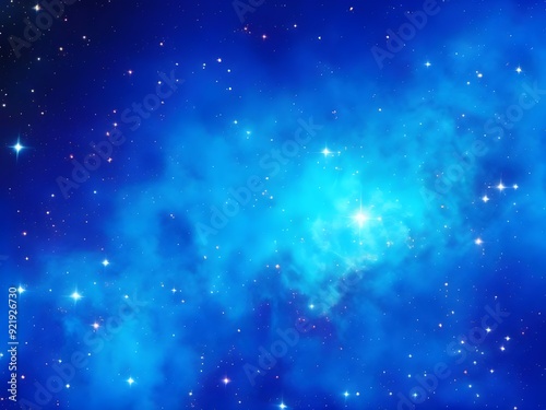 Fototapeta premium Glowing Blue Nebula with Stars in Deep Space Background