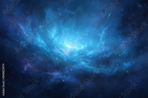 Fototapeta premium Glowing blue nebula with twinkling stars in a serene cosmic landscape