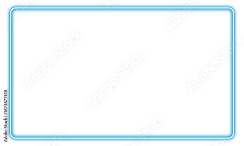 Obraz premium Glowing Blue Neon Rounded Rectangle Frame on White Background
